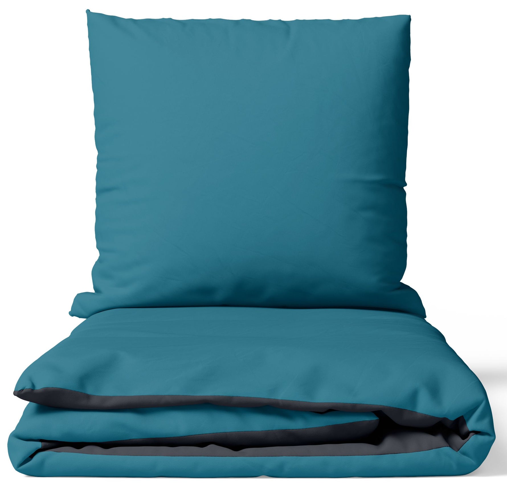 100% Baumwolle Biber Wendebettwäsche Petrol & Anthrazit Mit Verdecktem Reißverschluss