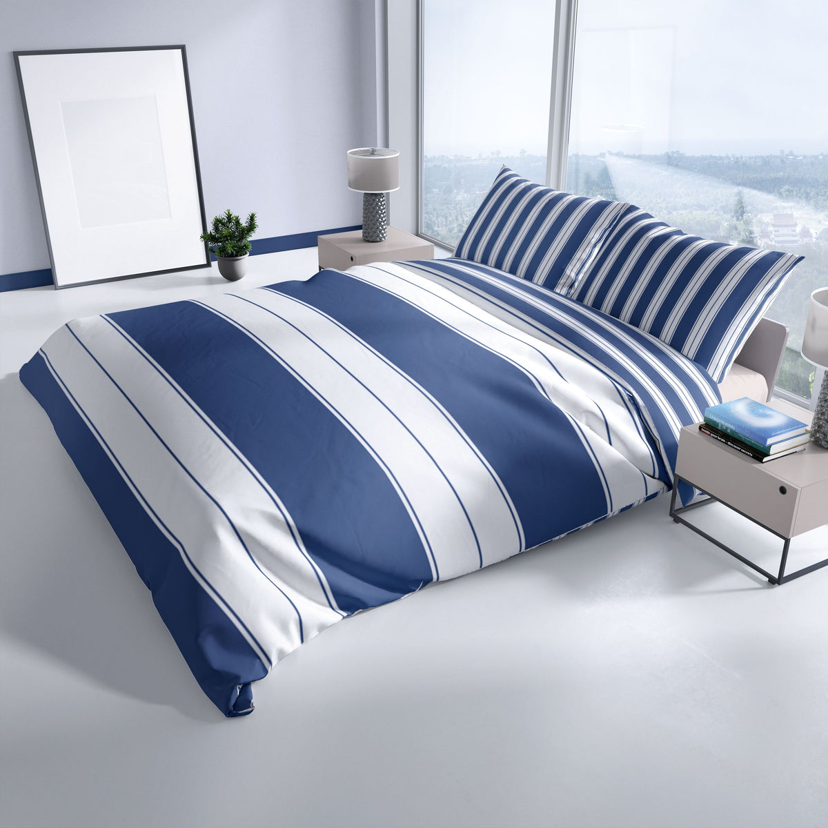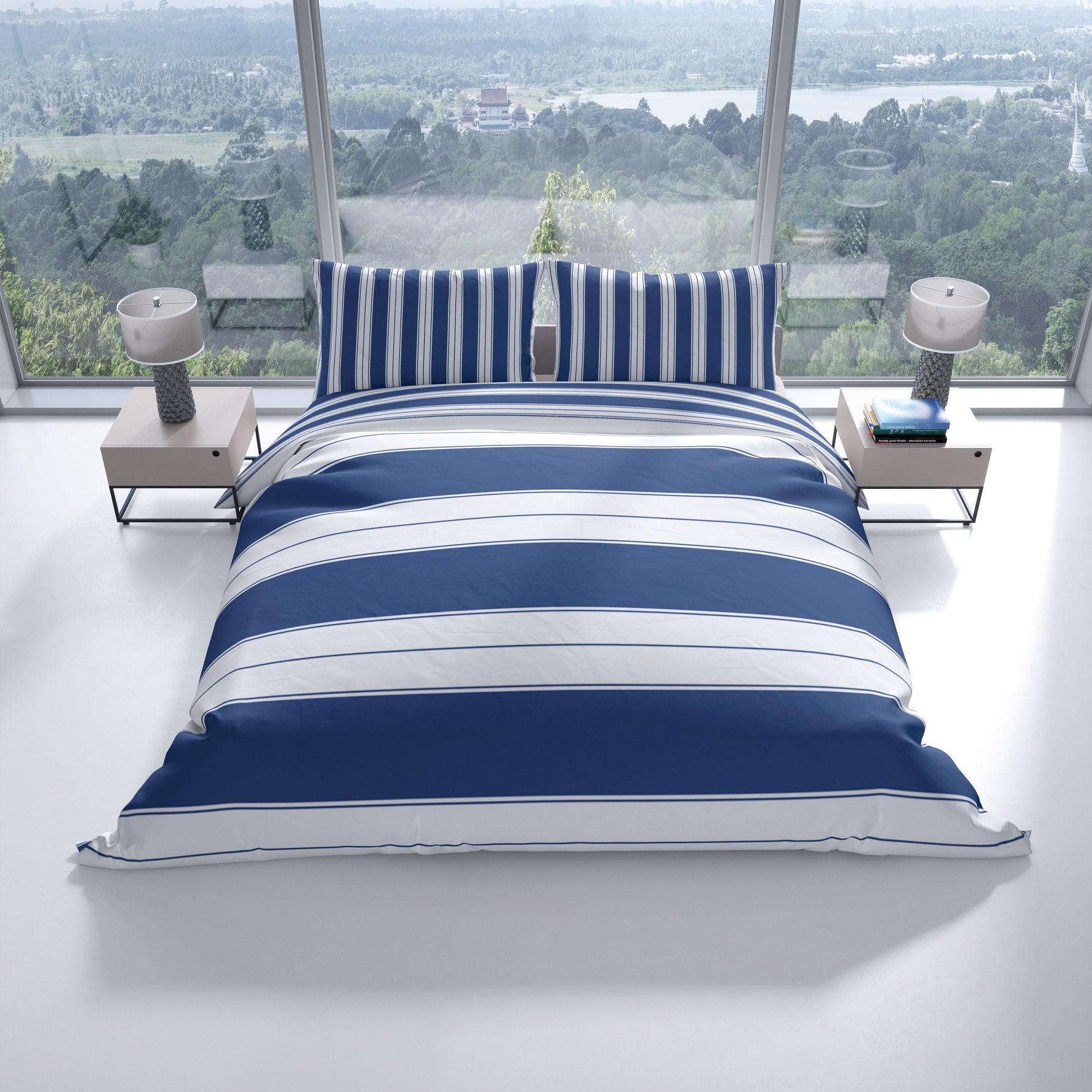 Baumwolle Bettwäsche Blau Weiß Gestreift Mit Verdecktem Reißverschluss Verschiedene Größen