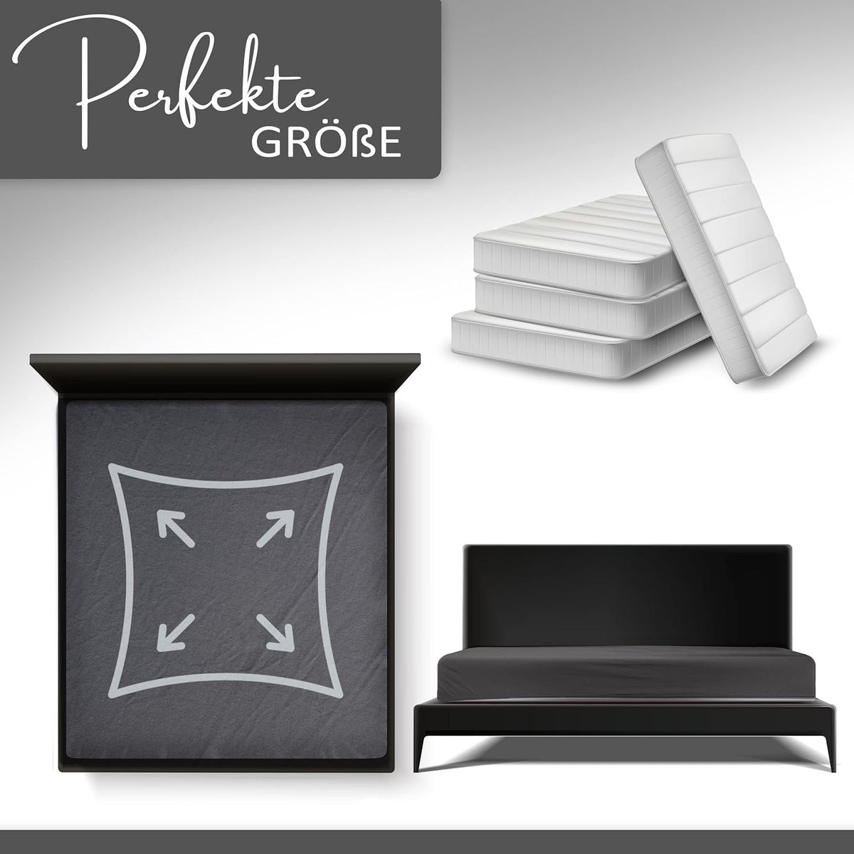 Jersey Spannbettlaken 100% Baumwolle, Wählbare Größe, Anthrazit, Einfarbig mit Rundumgummi
