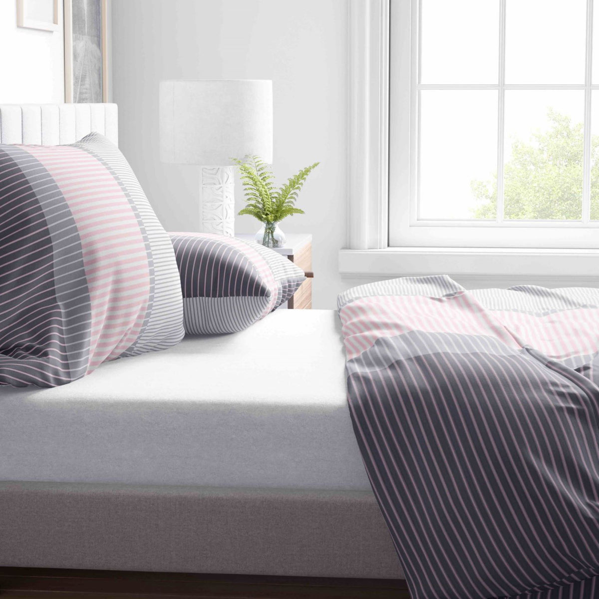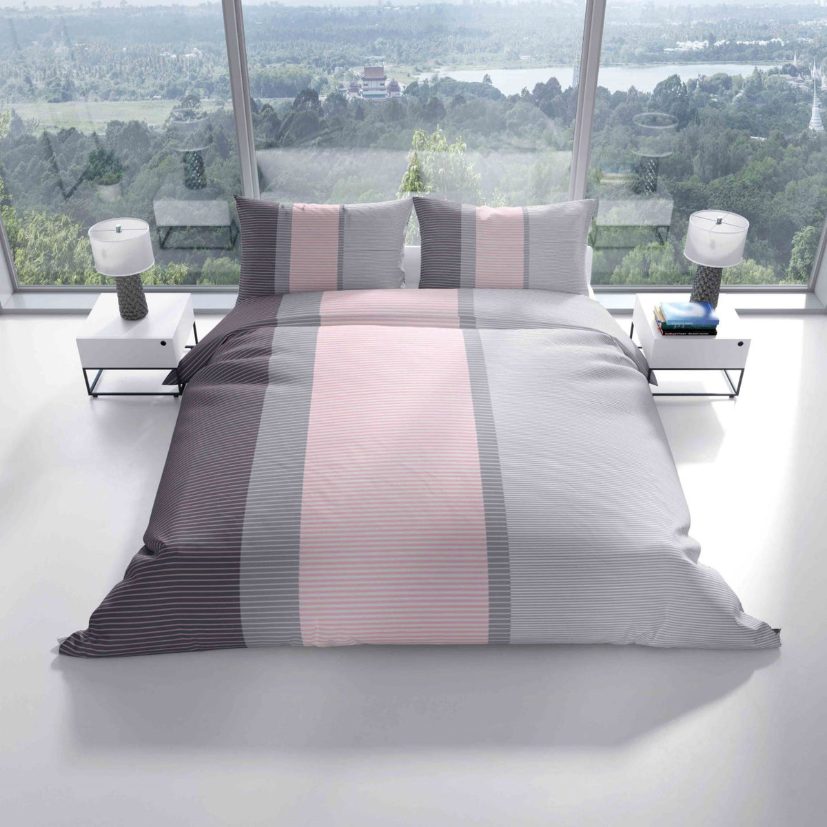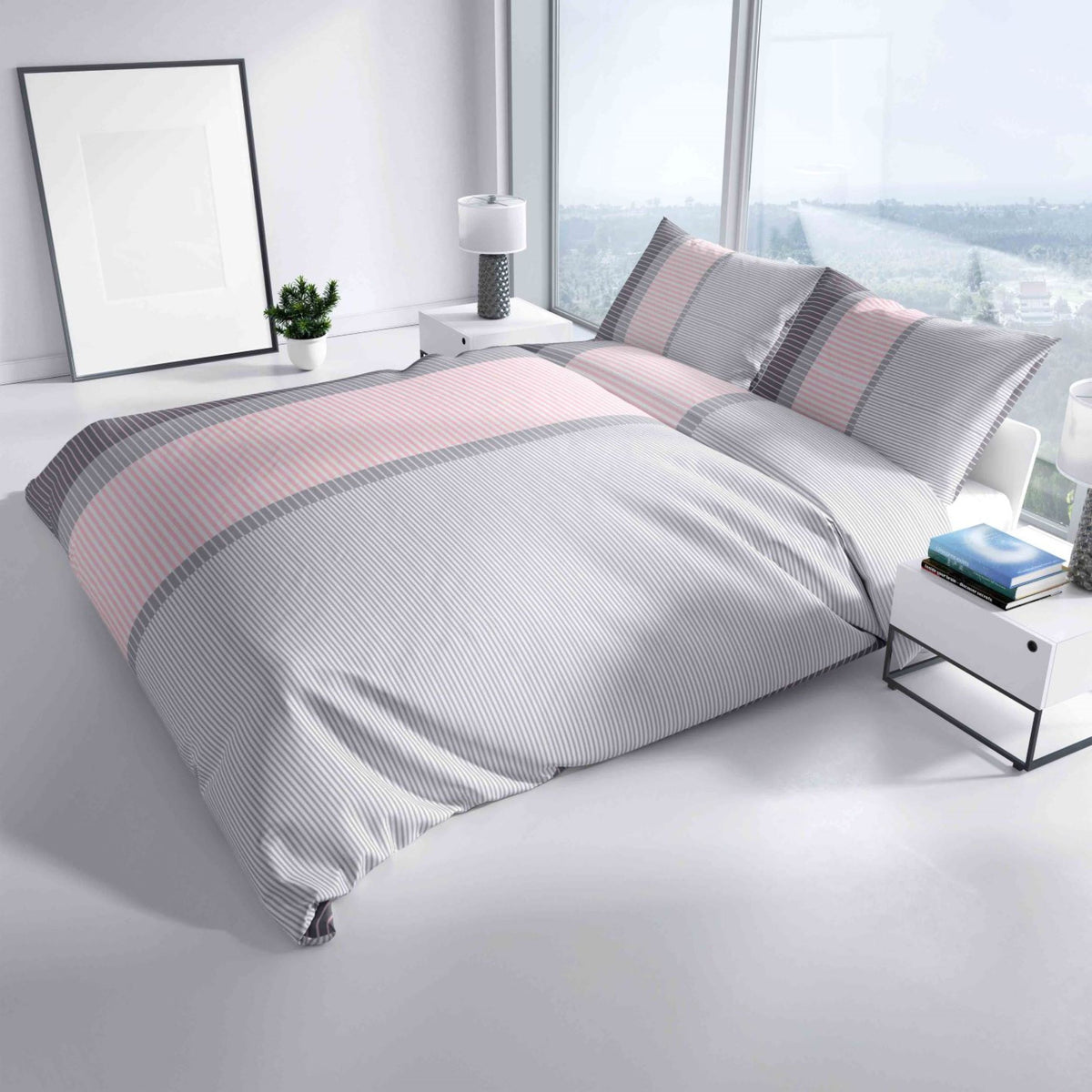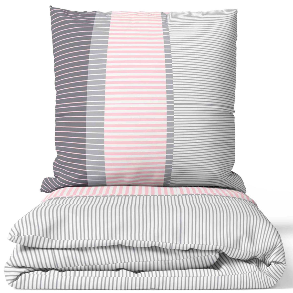 Bettwäsche Rosa Grau Gestreift mit verdecktem Reisverschluss In Verschiedenen Größen