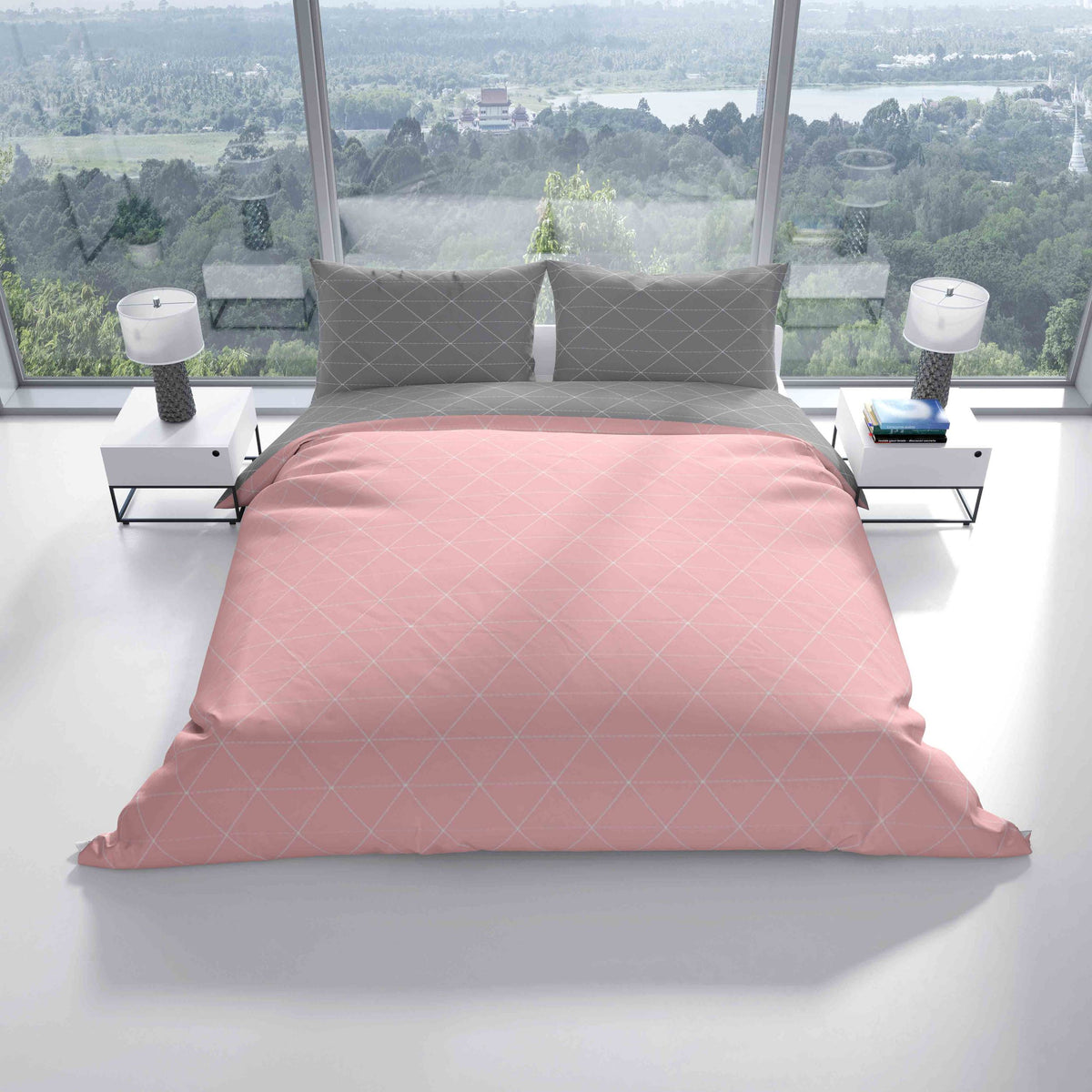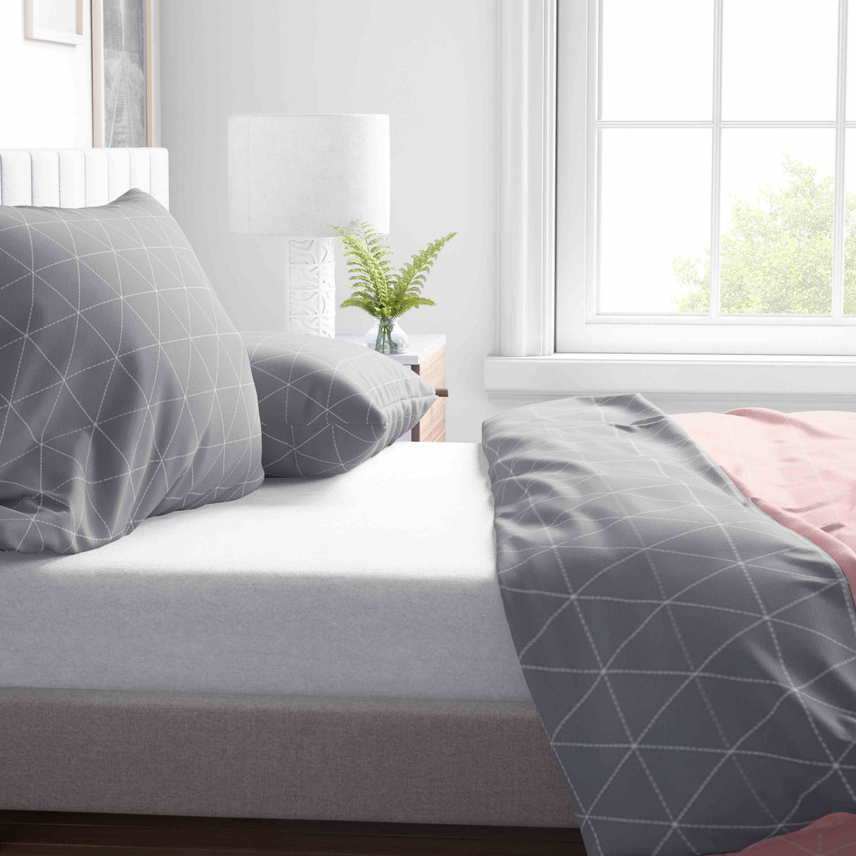 Renforce Bettwäsche Rosa Grau Rautenmuster In Handelsüblichen Größen