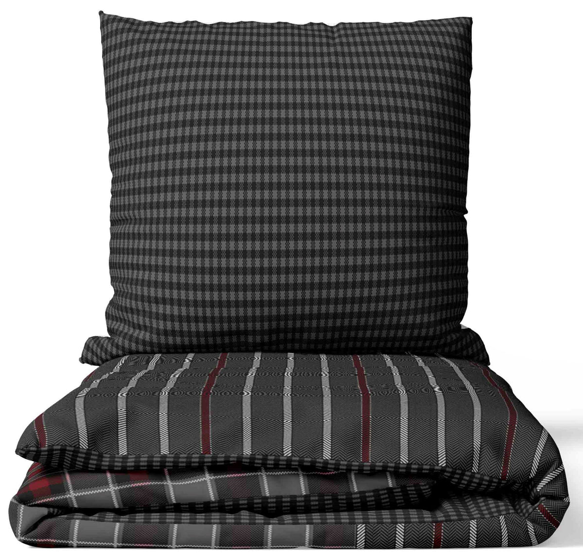 Erleben Sie den ultimativen Schlafkomfort mit unserer hochwertigen Renforce Bettwäsche aus 100% Baumwolle. Das Bettwäsche-Set Jonas besticht durch sein modernes, geometrisches Design in den eleganten Farben Anthrazit, Grau und Brombeer. Die Wende-Optik ermöglicht es Ihnen, das Design nach Belieben zu wechseln und Ihrem Schlafzimmer einen frischen Look zu verleihen.
