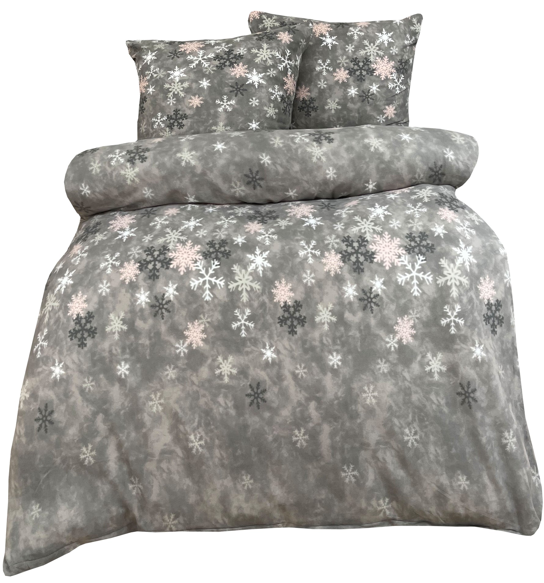 Fleece Bettwäsche Set wählbar, Grau, Schnee Kristalle Design, mit Reißverschluss