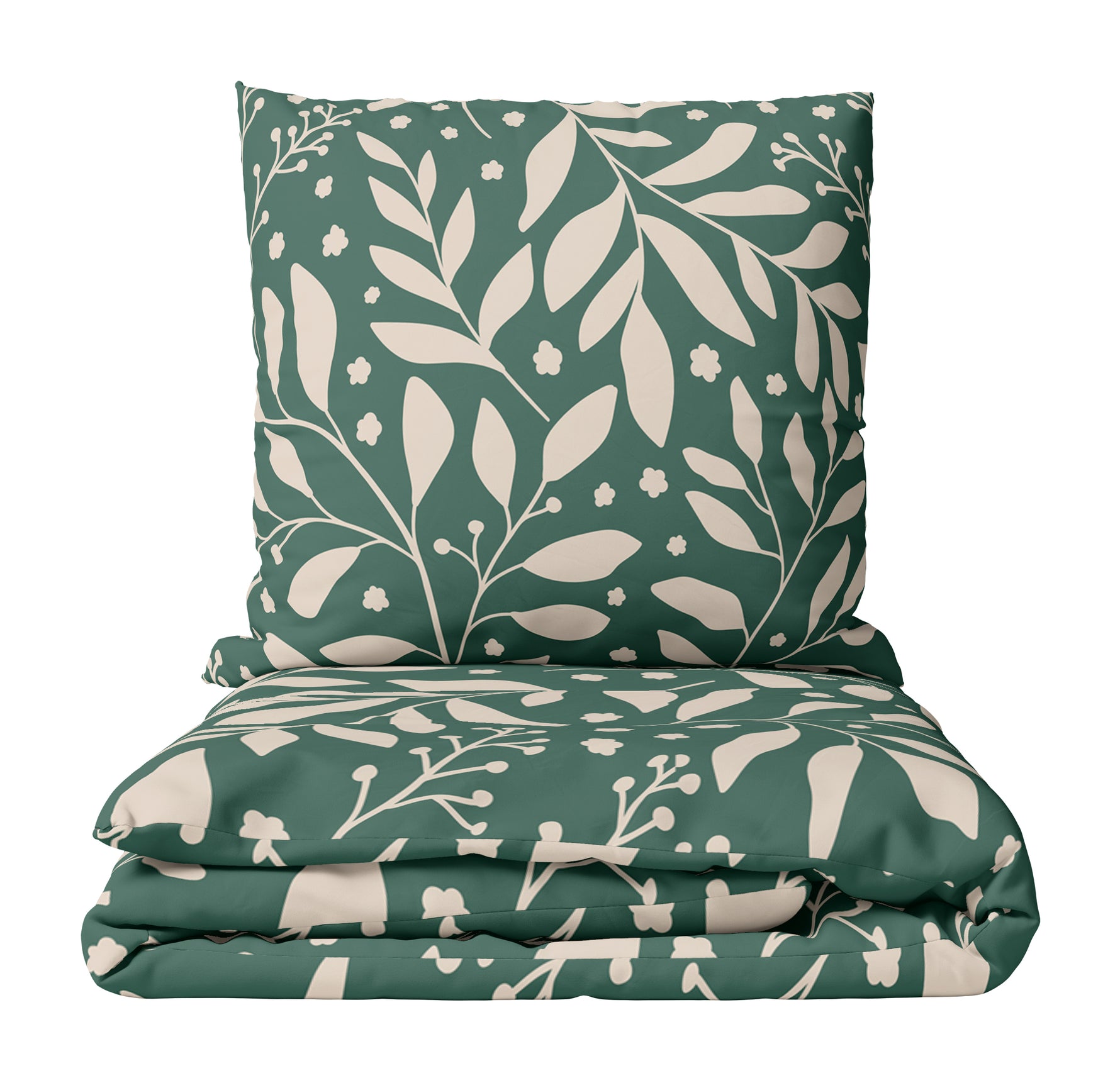 Jersey Bettwäsche 100% Baumwolle Floral Grün Beige YKK Reißverschluss Hautfreundlich