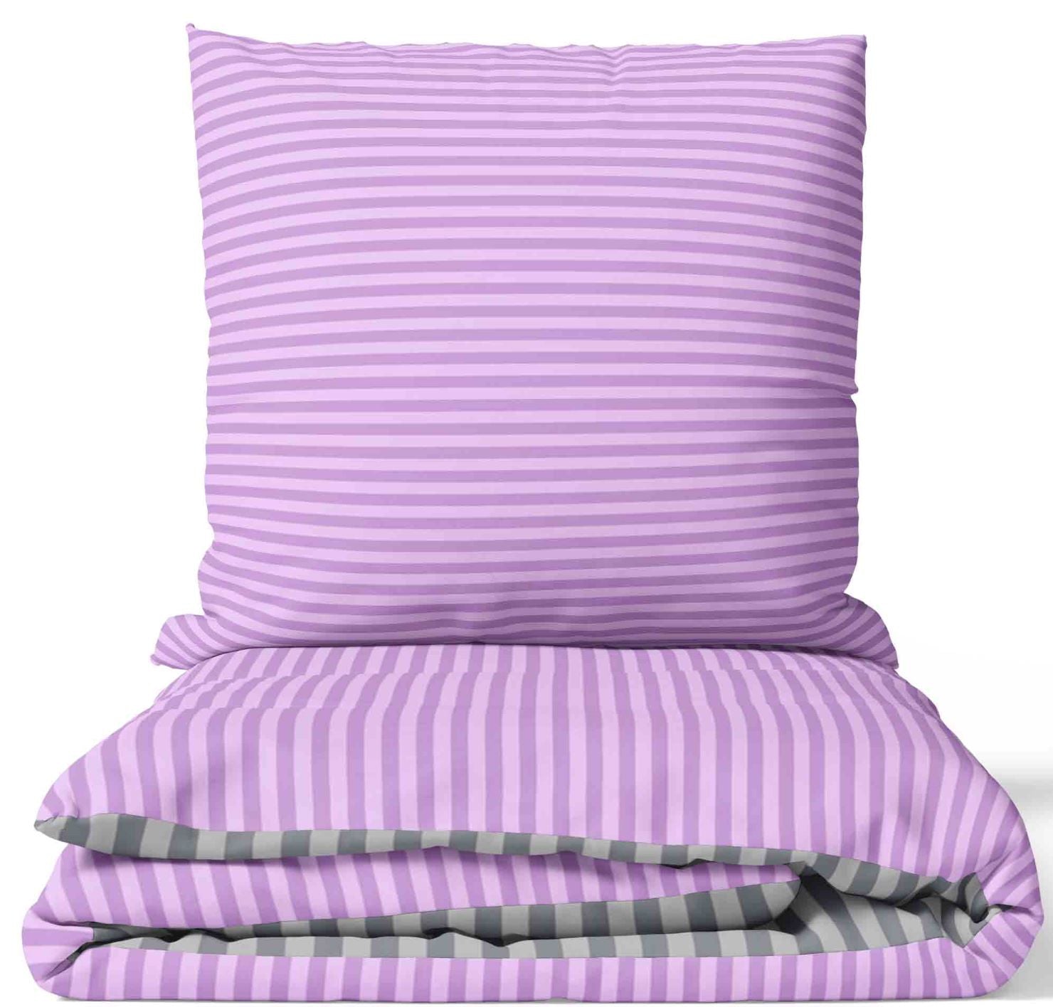Renforce Bettwäsche Anthrazit Lila Gestreift ,Größe Wählbar mit Verdecktem Reißverschluss