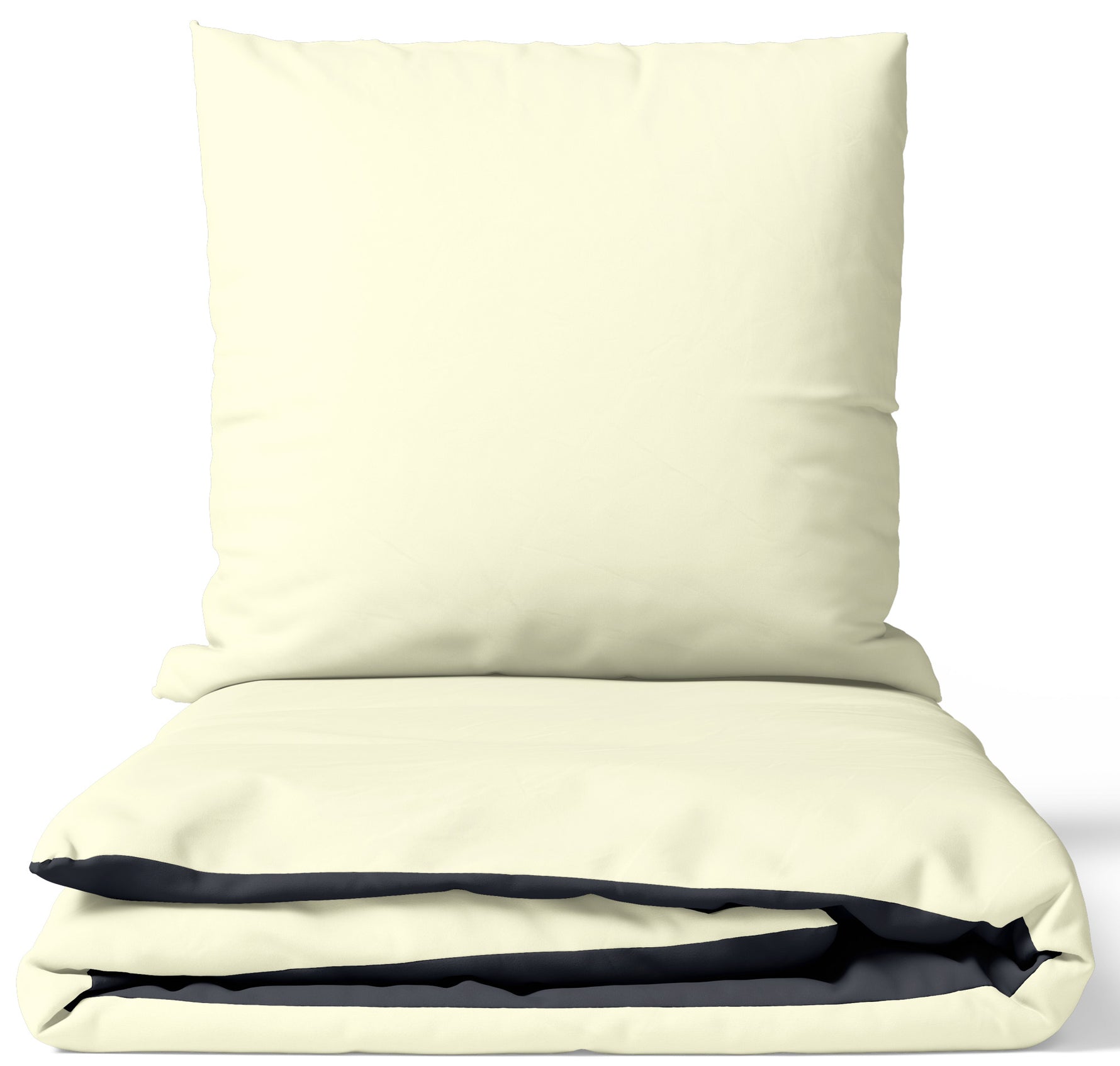100% Baumwolle Biber Wendebettwäsche Beige & Anthrazit Mit Verdecktem Reißverschluss