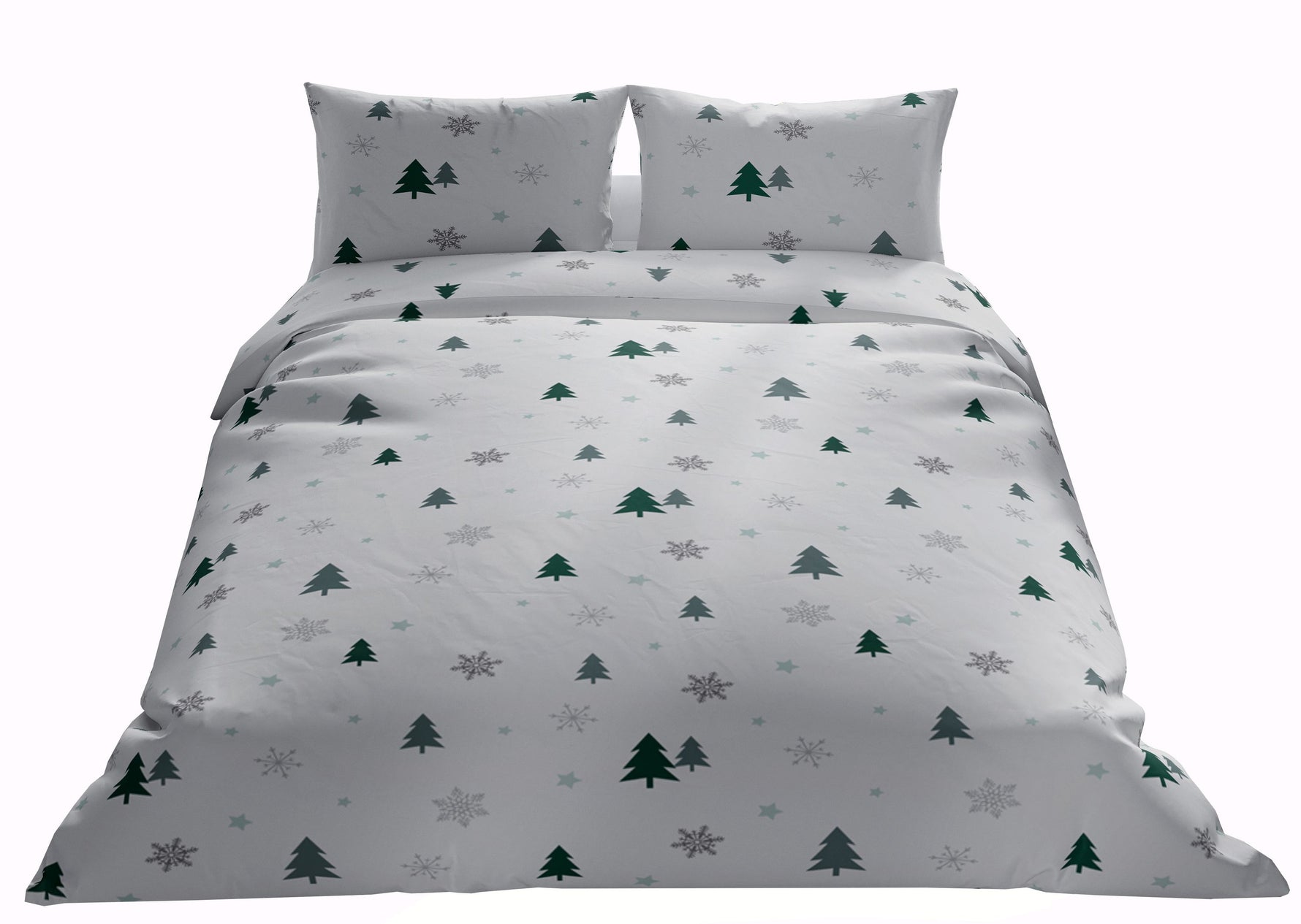 Fleece Bettwäsche Winterdesign Tanne Grau Grün Flauschig Mit Verdecktem Reißverschluss Größen wählbar